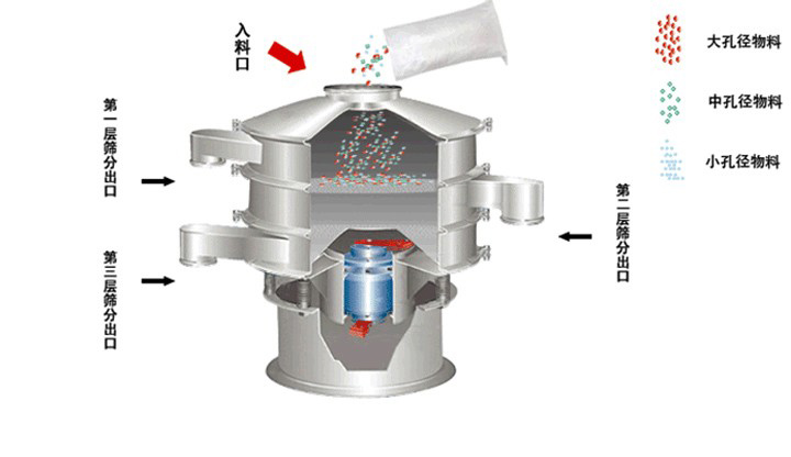 2、去液體:本設備單層、多層使用,可十分有效地處理固體、液體的混合物料,快速實現固液分離,并篩選過慮出不同的目的物料。