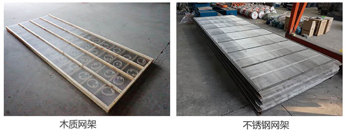 (1)產能低時,產量就會比較低,多層直線振動篩的框架可以選擇木質框架,產能高時,產量就會比較高,就需要選擇鋼質框架了。